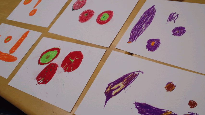 張り子で、りんご・人参・さつまいも作りに挑戦。