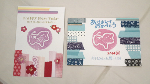 園児さんでも、この材料があれば簡単に年賀状が作れますね。