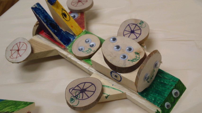 木片や枝を使って、色々なものを作りました。