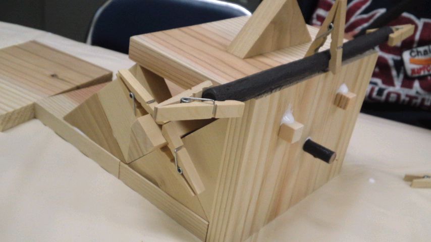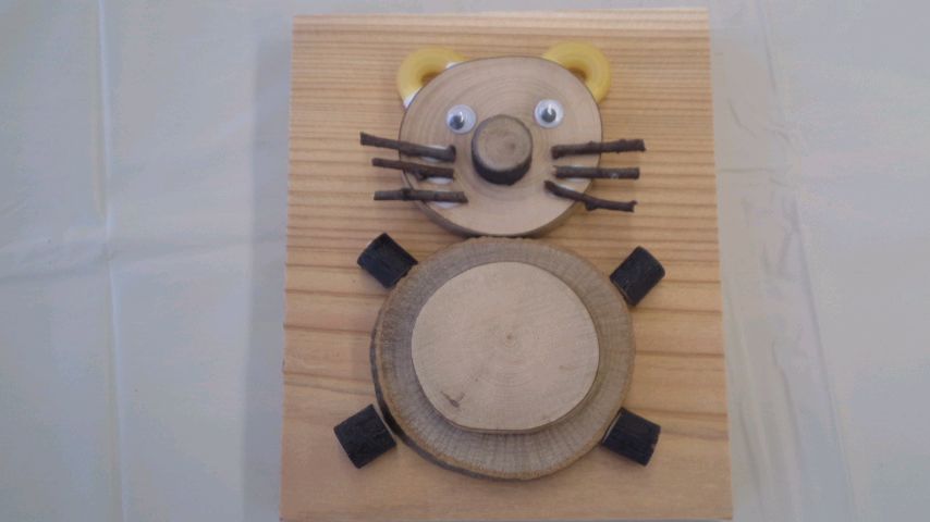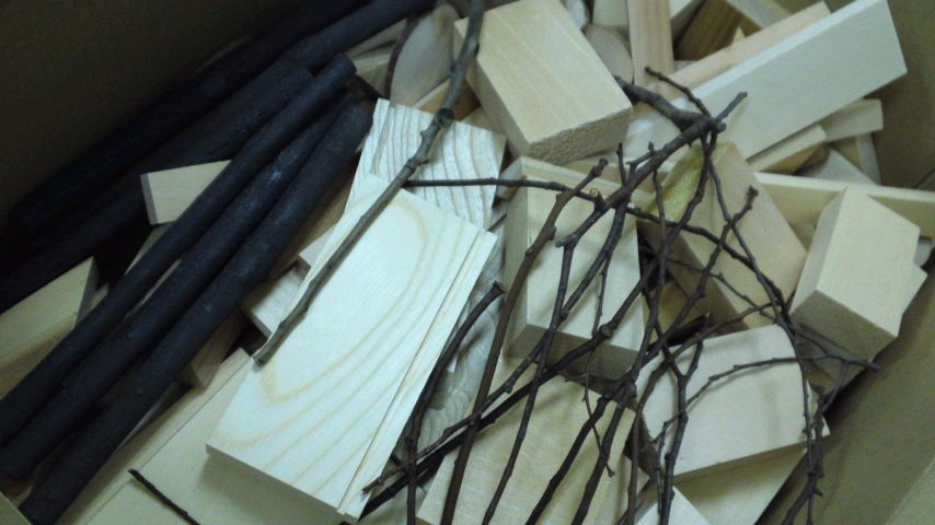 木の切れ端や枝などを使って