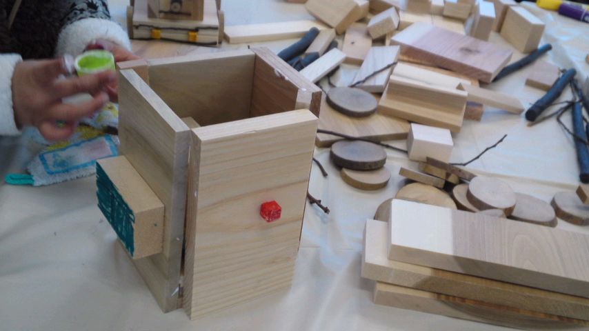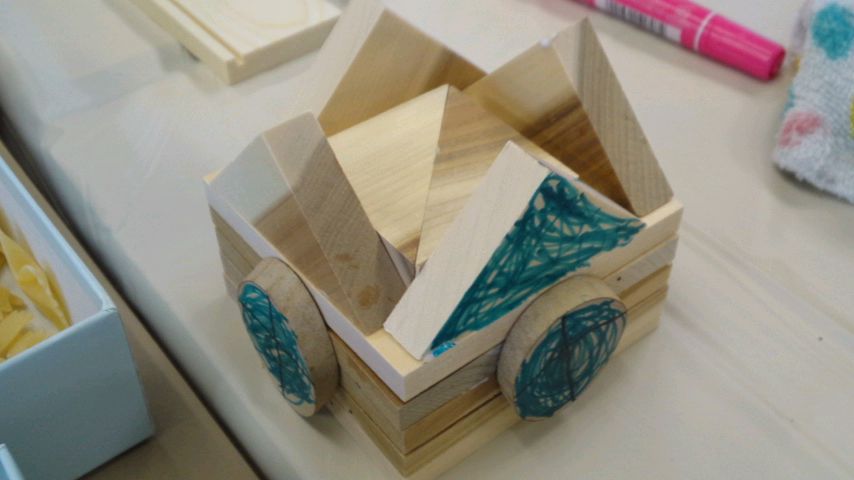お母さんがお迎えにくるまで木工作に取り組みました。