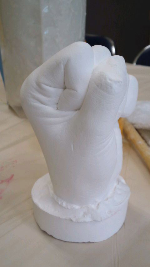 石膏でリアルな手形を作りました。