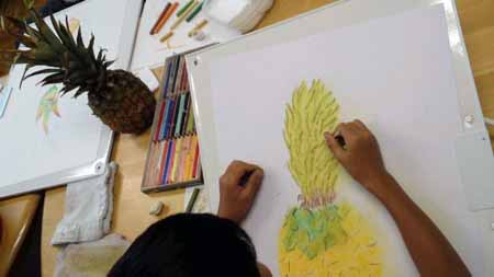 小学生のクラスはパステル画に挑戦。