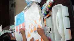 一宮朝日教室では、ポスターと工作の宿題サポートを行いました。