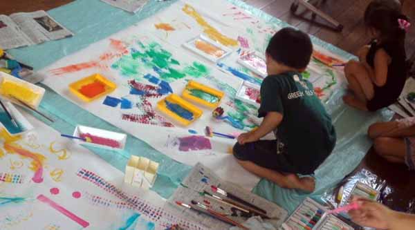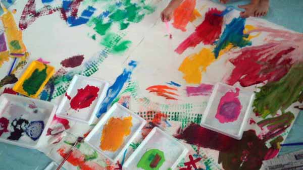 手足にいっぱいの絵の具をつけながら