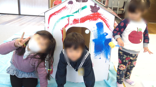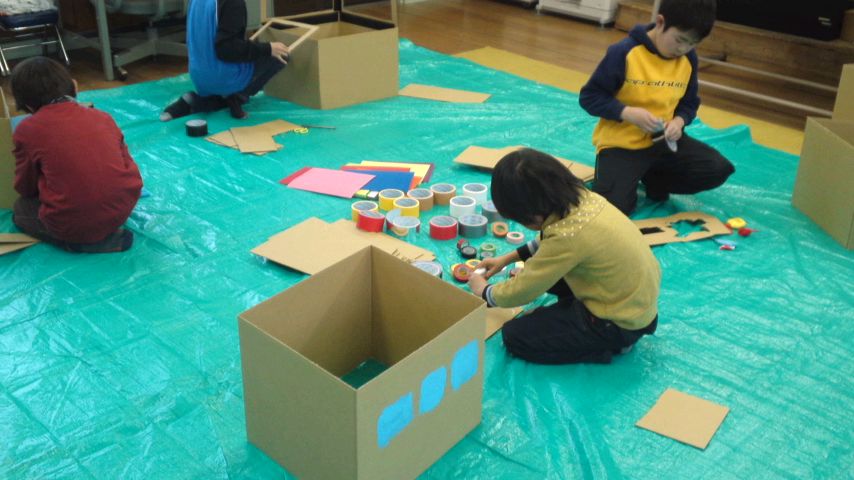 まず取りかかる前に、全員段ボールの中に入って