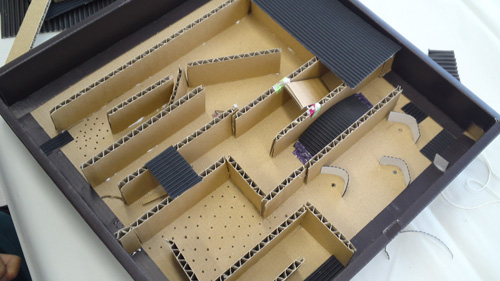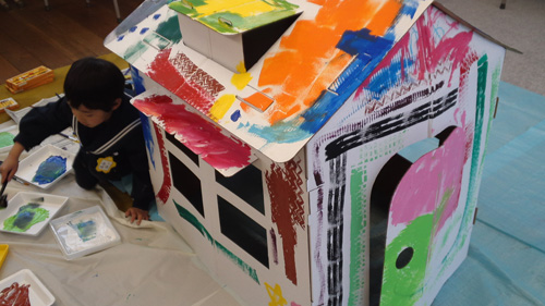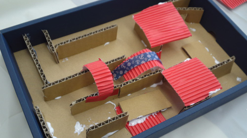 段ボールと箱を使って、迷路を作りました。