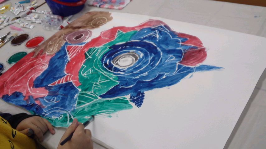 はじき絵の要領で仕上げていきました。