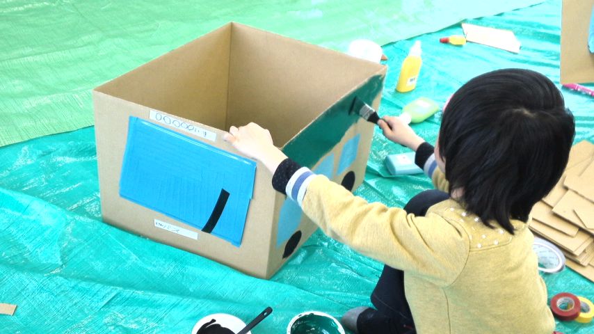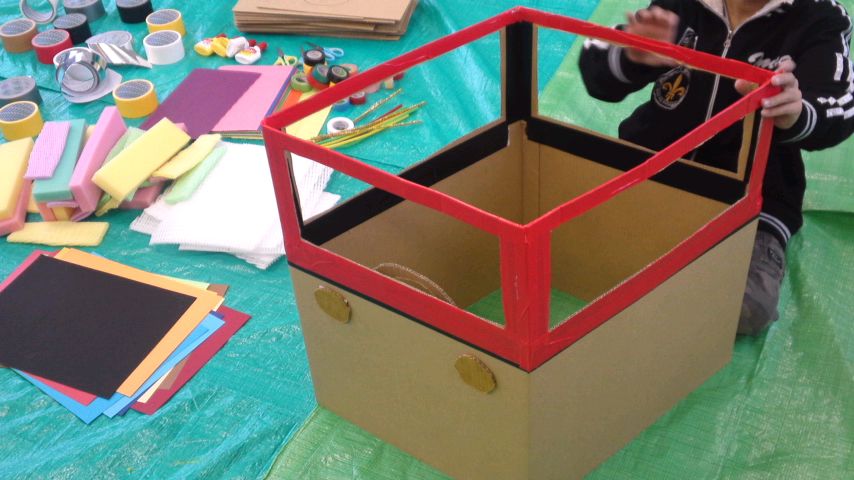 段ボールを使って、それぞれ乗り物を作りました。