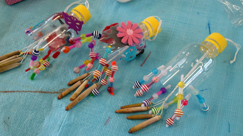 ペットボトルを使って風鈴作り。