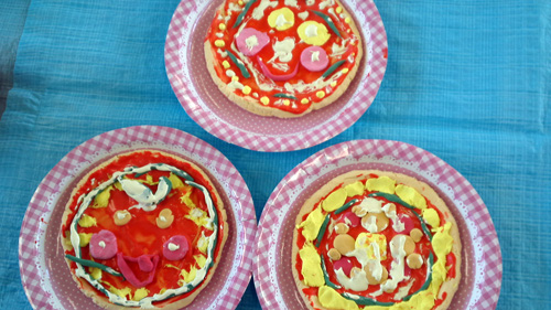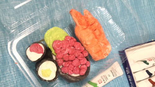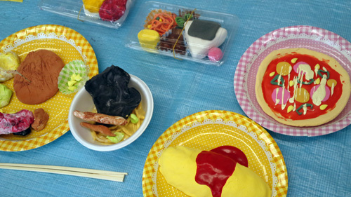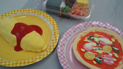 紙粘土を使って、食べ物を作りました。